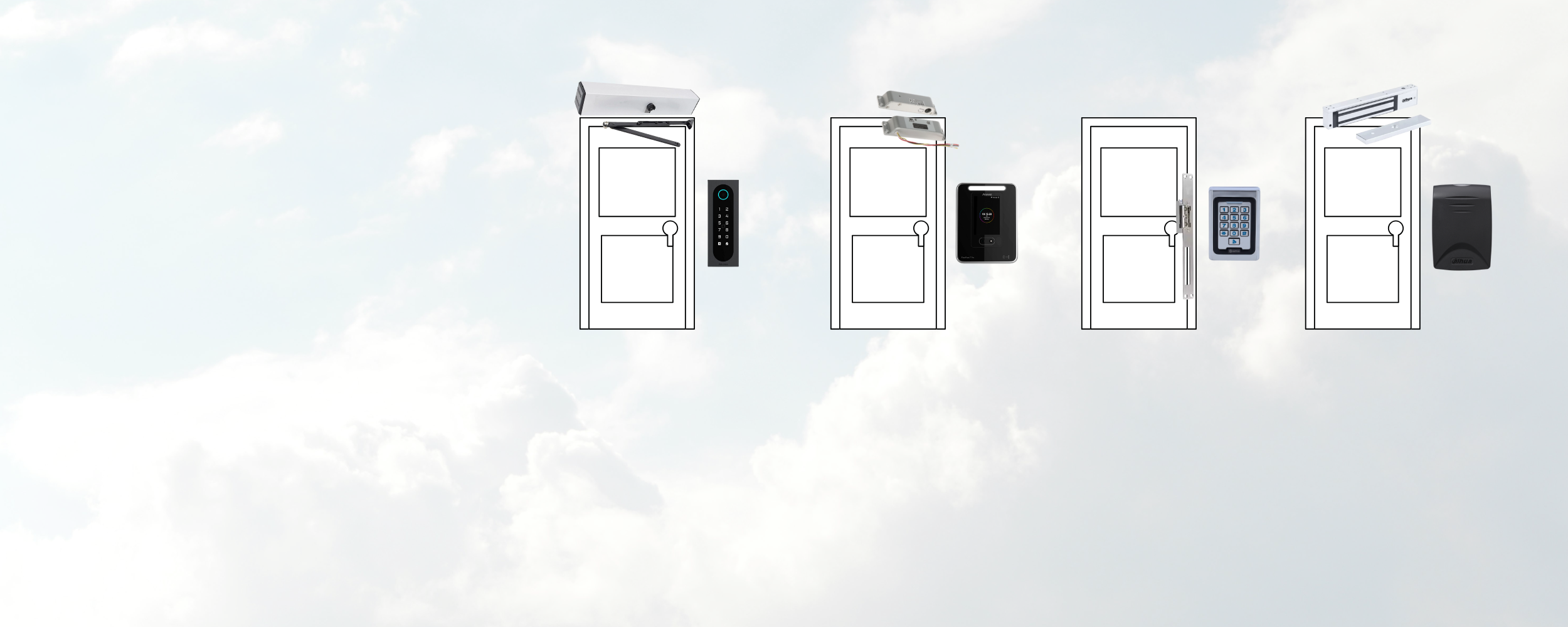 4 deuren, ieder met een standalone toegangscontrole apparaat. Je hebt dan geen centrale controller nodig.