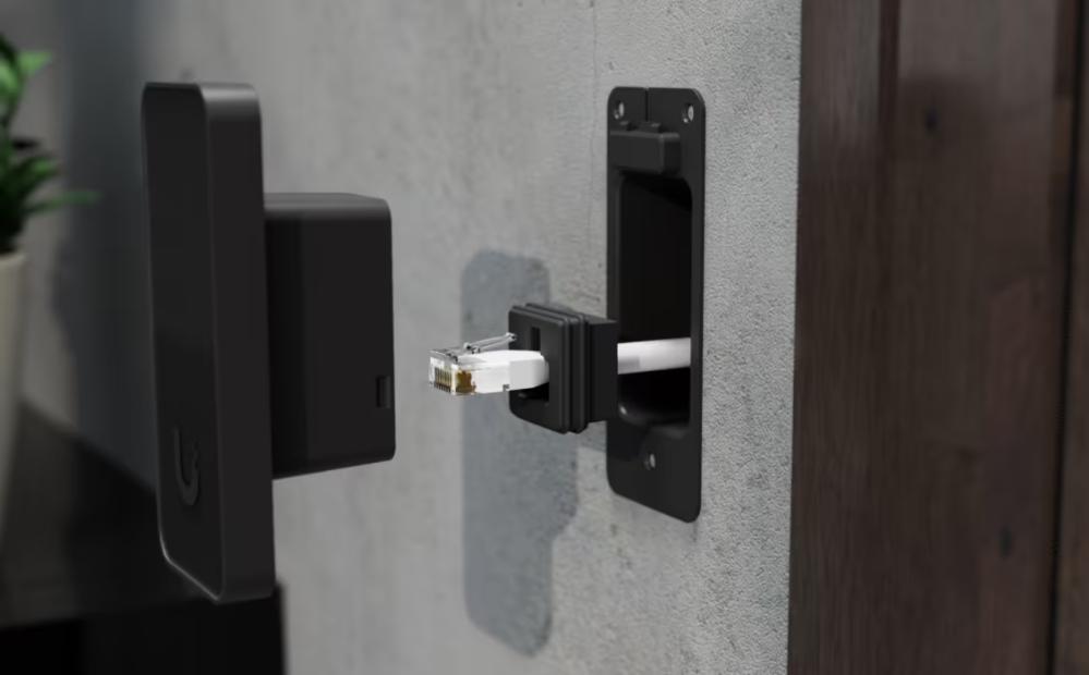 De reader beschikt over een 10/100 MbE RJ45-poort, ondersteunt BLE 4.1 en NFC, en wordt gevoed via PoE (48V DC, maximaal 5W). Zowel UL 294 Power-limited Class 2 PSU als UL 60950-1/62368-1 LPS/PS2 PSU worden ondersteund. Voor optimale prestaties worden Cat 5e patchkabels (minimaal 26 AWG, horizontaal/riser 24 AWG) aanbevolen.