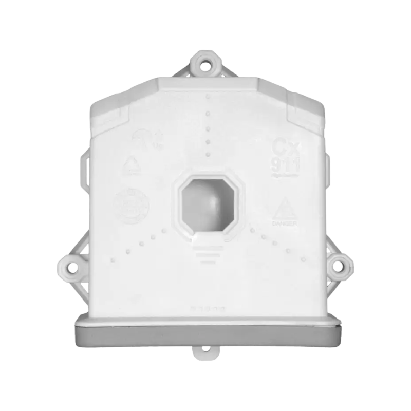 De universele opbouwdoos beschikt over vier bevestigingspunten, waardoor montage aan zowel muren als plafonds eenvoudig is.
